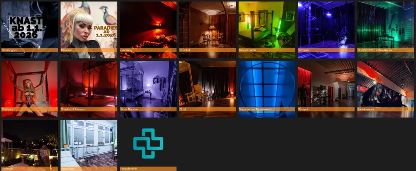 You’re welcome to explore the other rooms, too. If you have a preference, I’ll make sure a cross or a spanking bench is prepared before your visit—waiting for you.